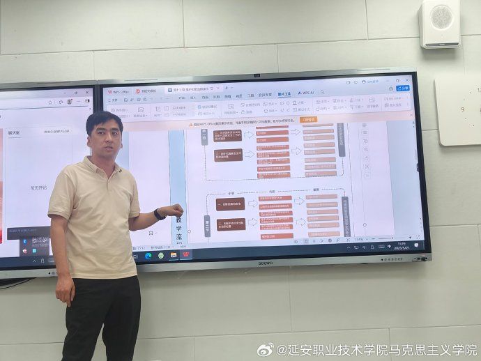 5月21日,延安职业技术学院马克思主义学院举行形策与新思想课程磨课会。白倩讲述《中国式现代化的特征之人口规模巨大》、郭子雪讲述《坚定文化自信》、刘超鹏讲述《总体国家安全观》课程设计。全体与会教职工、各教研室主任进行了点评。
