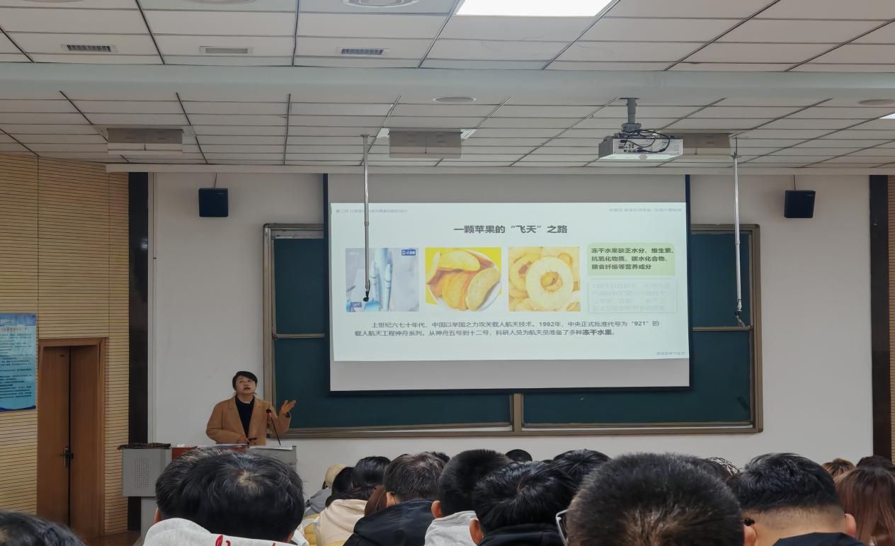 授课过程中,姜静老师立足课程核心要点,以“一颗苹果的飞天之路”为巧妙切入点,紧密结合农林系专业特色,将延安苹果、洛川苹果等当地核心产业发展案例融入教学。从2016年神舟十一号到 2025 年神舟二十一号,延安苹果先后11次伴随航天器进入太空。这条科技创新之路,不仅生动诠释了“改革开放是当代中国最鲜明的特色、创新是发展进步的活力源泉”,更实现了思政教育与地方产业的深度融合。