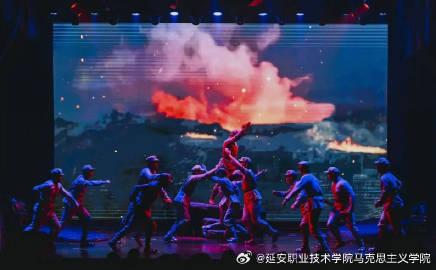 3月8日下午,延安职业技术学院马克思主义学院、农林与建筑工程系百余名师生在延安文艺纪念馆观看了深圳大学原创音诗画舞台剧《亲爱的红军》。
