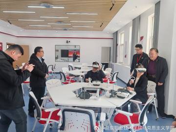 冯奇海等查看了圣地工匠智慧思政工作室的建设情况,体验了VR思政教学资源。他指出:当前,教育数字化改革如火如荼,思政教育也应拥抱时代和技术进步。圣地工匠智慧思政工作室的建设对我校思政教育具有重要意义。从技术角度,将大数据、人工智能等前沿技术引入思政教育,丰富了思想政治教育的方法论体系;在实践层面,它提升了思想政治教育的实效性和亲和力。通过技术赋能,传统枯燥的说教被生动的虚拟现实体验取代,抽象的理论被具象的案例诠释,可以有效激发学生的学习兴趣和参与热情。