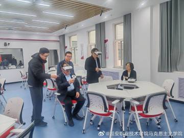 牛永红一行听取了圣地工匠智慧思政工作室的建设情况,详细了解了软硬件配置,并观看了数字人、定制VR思政教学资源。牛永红指出:思政教育要与学校的专业技术教育相互结合,通过学生乐于接受的方式潜移默化地建立正确的人生观价值观世界观。马克思主义学院要立足延安本地红色资源、中国优秀传统文化,融合军士、航运等专业需求,开发和丰富特色思政教育资源。 (2026012)